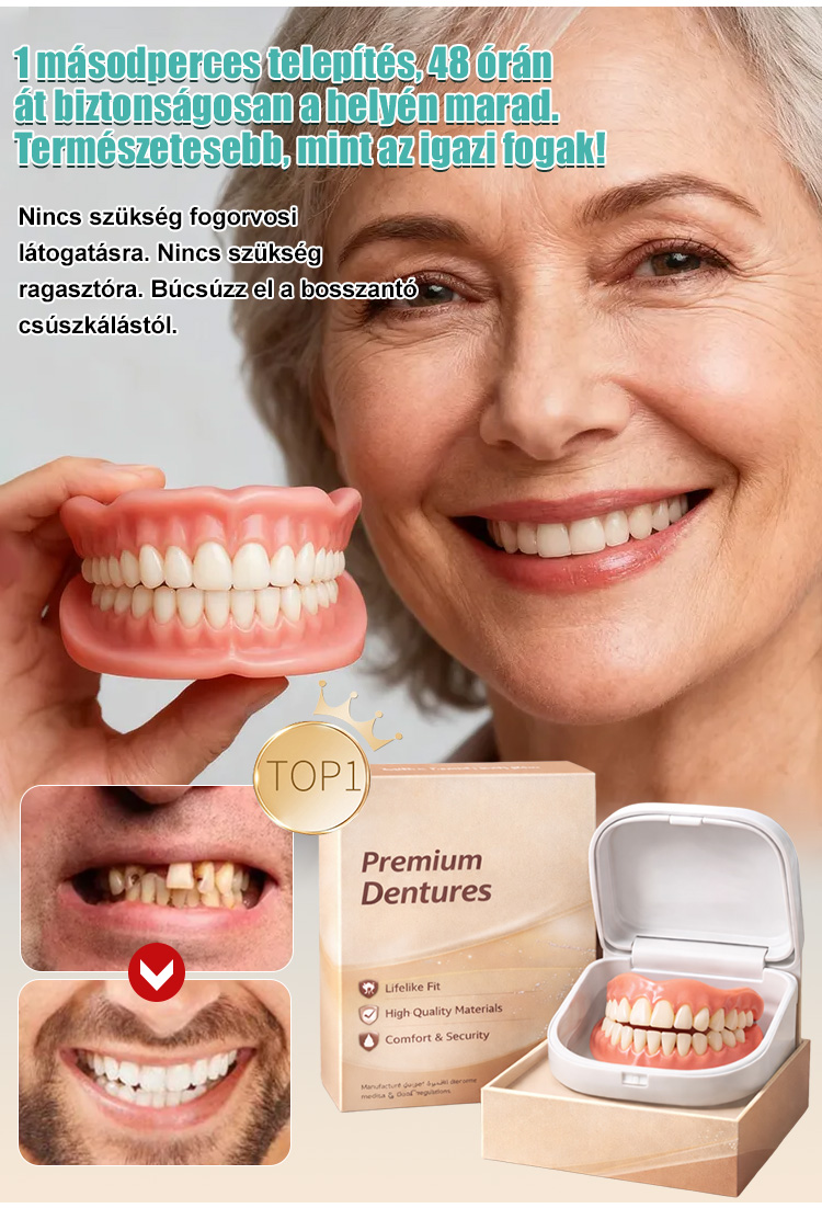 【Hordozható fogsor tokot tartalmaz】 Fogsorok, amelyek visszaadják mosolyát